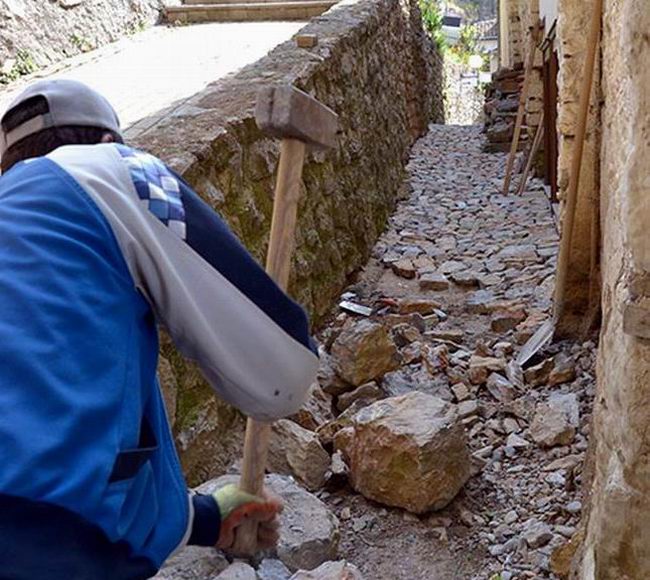 „Поплочувањето е благороден чин со оглед на тоа што вредните мајстори носат автентични камења од горниот дел на населбата и непосредно пред редењето рачно ги обликуваат.“ – велат од општина Охрид.