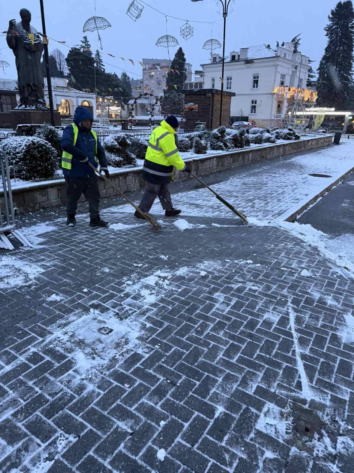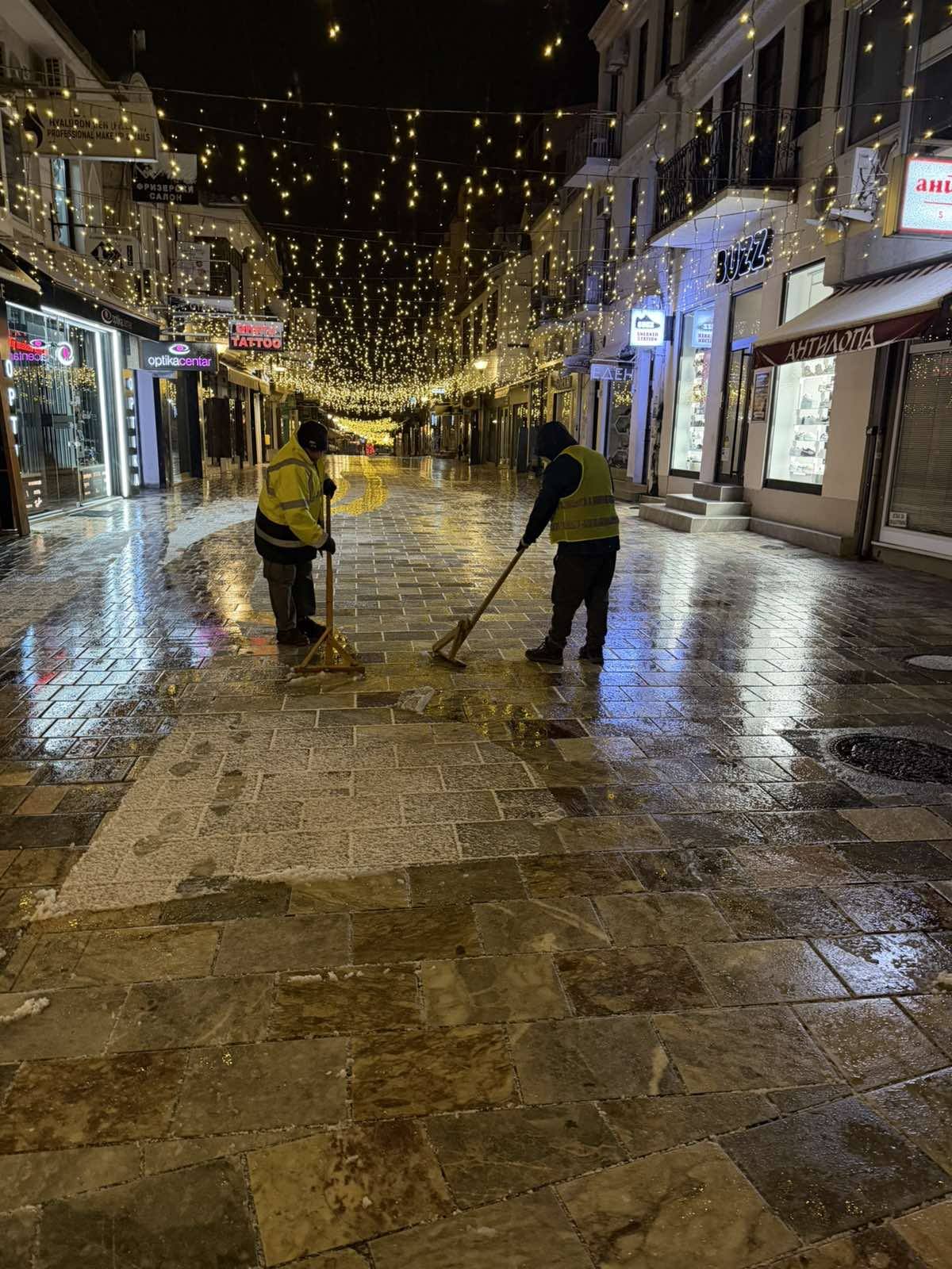 После синоќешните снежни врнежи мобилизирани се дежурните екипи на ЈП Охридски Комуналец со целокупната расположлива механизација и човечки ресурси.