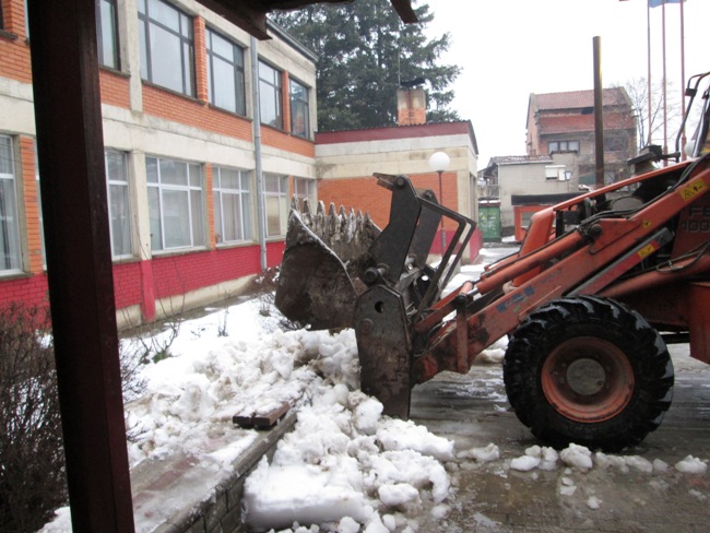 Денес во заедничка акција на ЈП Комуналец и техничката служба при ОУ „ Христо Узунов“ беа расчистени патеките и училишниот двор од снегот кој наврна во текот на вчерашниот ден.