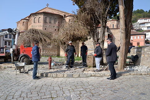 Во рамки на активностите на локалната самоуправа за разубавување на стариот дел од Охрид, денес ЈП “Градски гробишта“ започна со уредување на просторот пред црквата Св. Софија.