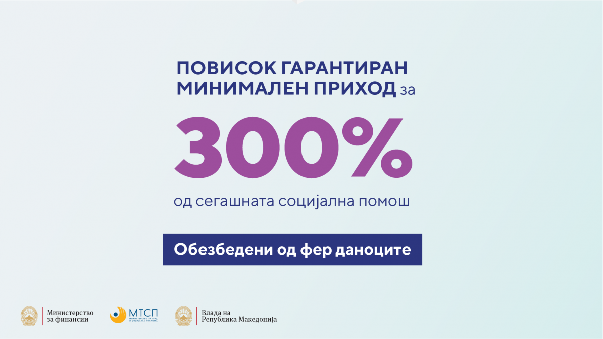 Преку напуштање на политиките на рамен данок и воведување на прогресивно праведно даночење во буџетската 2019 година се планира да се соберат околу 25 милиони евра во буџетот со кои ќе се финансираат мерки за намалување на сиромаштијата односно за спроведување на минималниот гарантиран приход со кој ќе се извлекуваат луѓето од сиромаштија и ќе се активираат на пазарот на трудот, најавија владините министри.