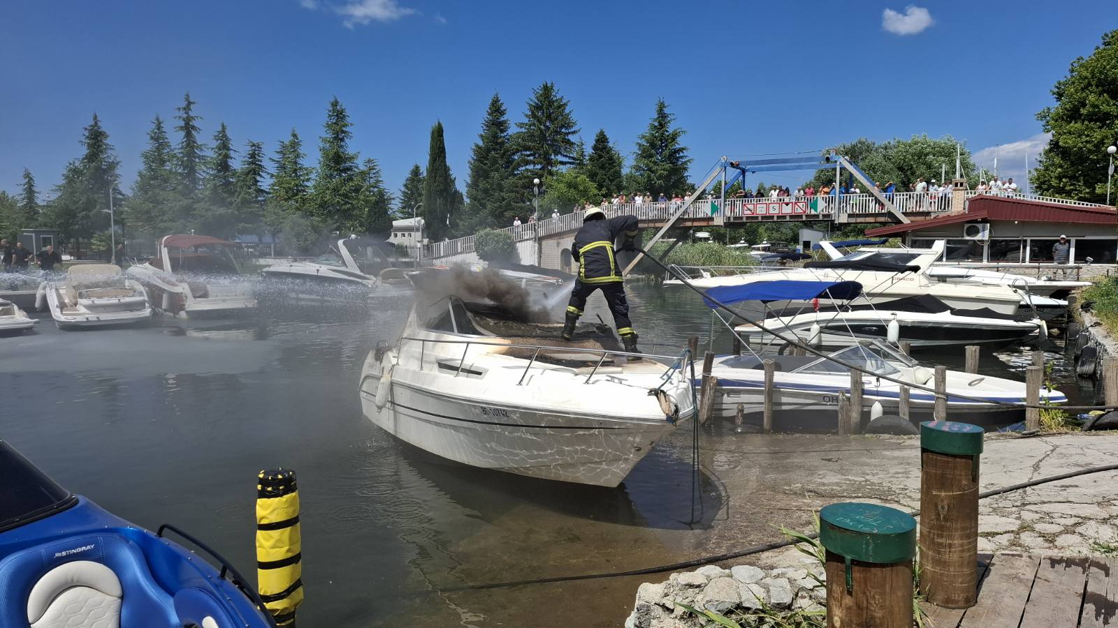 Пожар избувнал на глисер во каналот Студенчишта. Само што бил стартуван моторот во пловниот објект избил оган кој брзо се проширил. Во глисерот имало едно лице кое не е повредено.