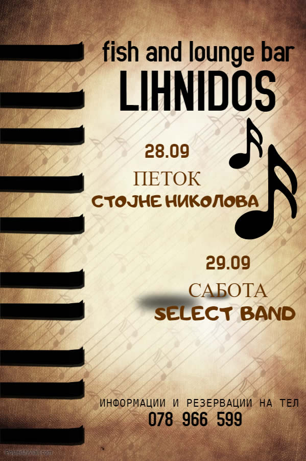 На 29 септември, сабота, во фиш и лаунџ бар Лихнидос настапува Селект бенд .