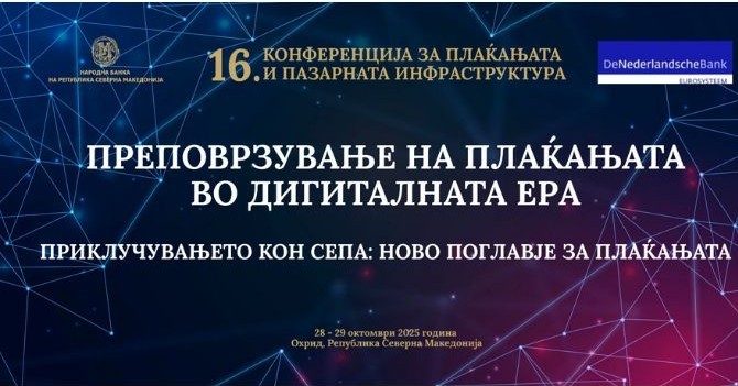 Централна тема на Конференцијата ќе биде иднината на плаќањата по историскиот исчекор на нашата земја со интеграцијата во Единствената област за плаќање во евра – СЕПА, заедно со Албанија, Црна Гора и Молдавија. Во таа чест, на Конференцијата ќе се обрати генералниот директор на Европскиот совет за плаќања, Џорџо Андреоли. Гувернерот Славески, заедно со гувернерите на централните банки на Босна и Херцеговина, Косово, Црна Гора и Молдавија, како и заменик-гувернерката на Банката на Албанија, ќе дискутираат за придобивките за граѓаните и компаниите од членството во СЕПА, како и за можностите за идниот развој на регионот и за неговото интегрирање во единствениот европски пазар, уште пред пристапувањето кон Европската Унија, информираат од Народна банка.