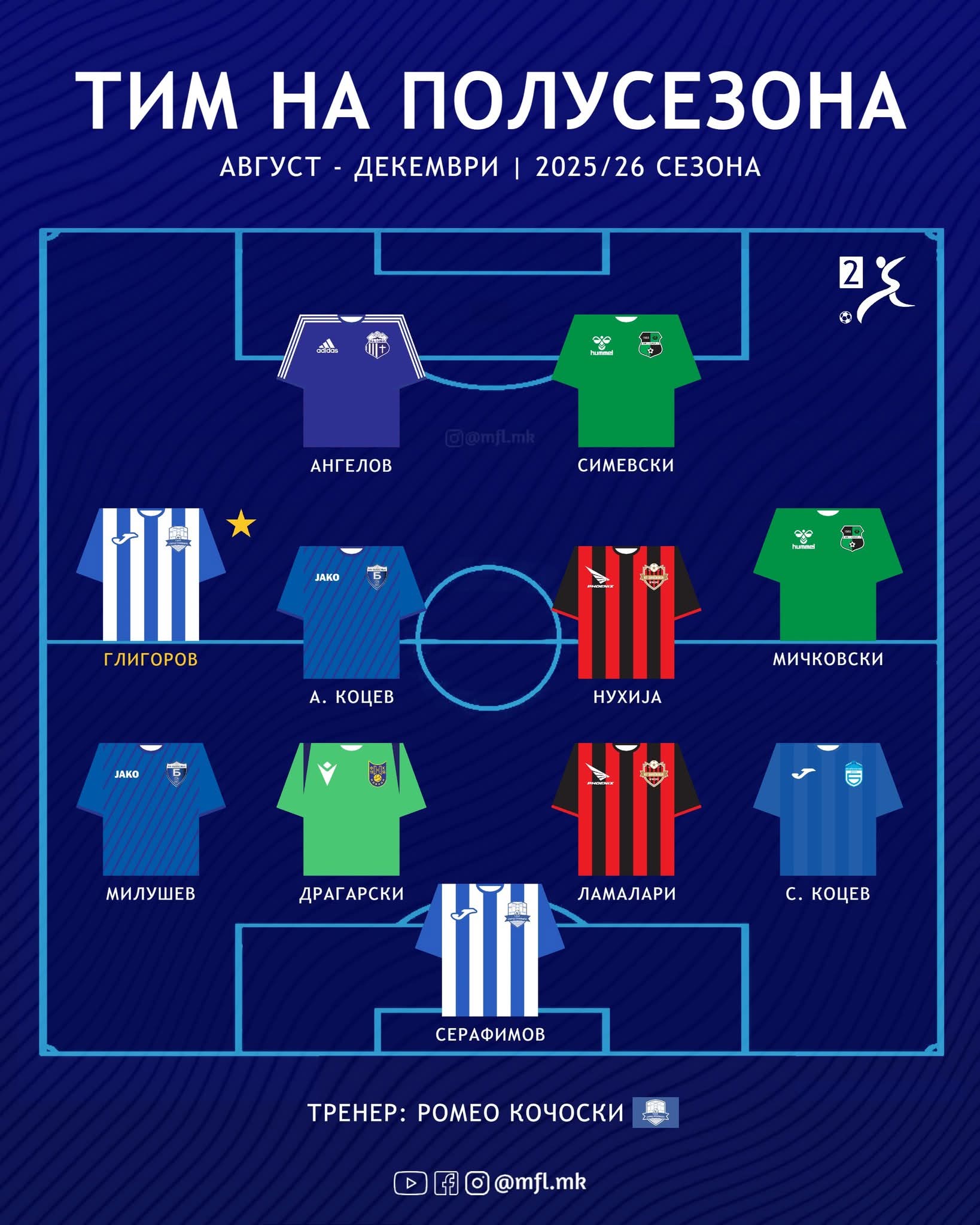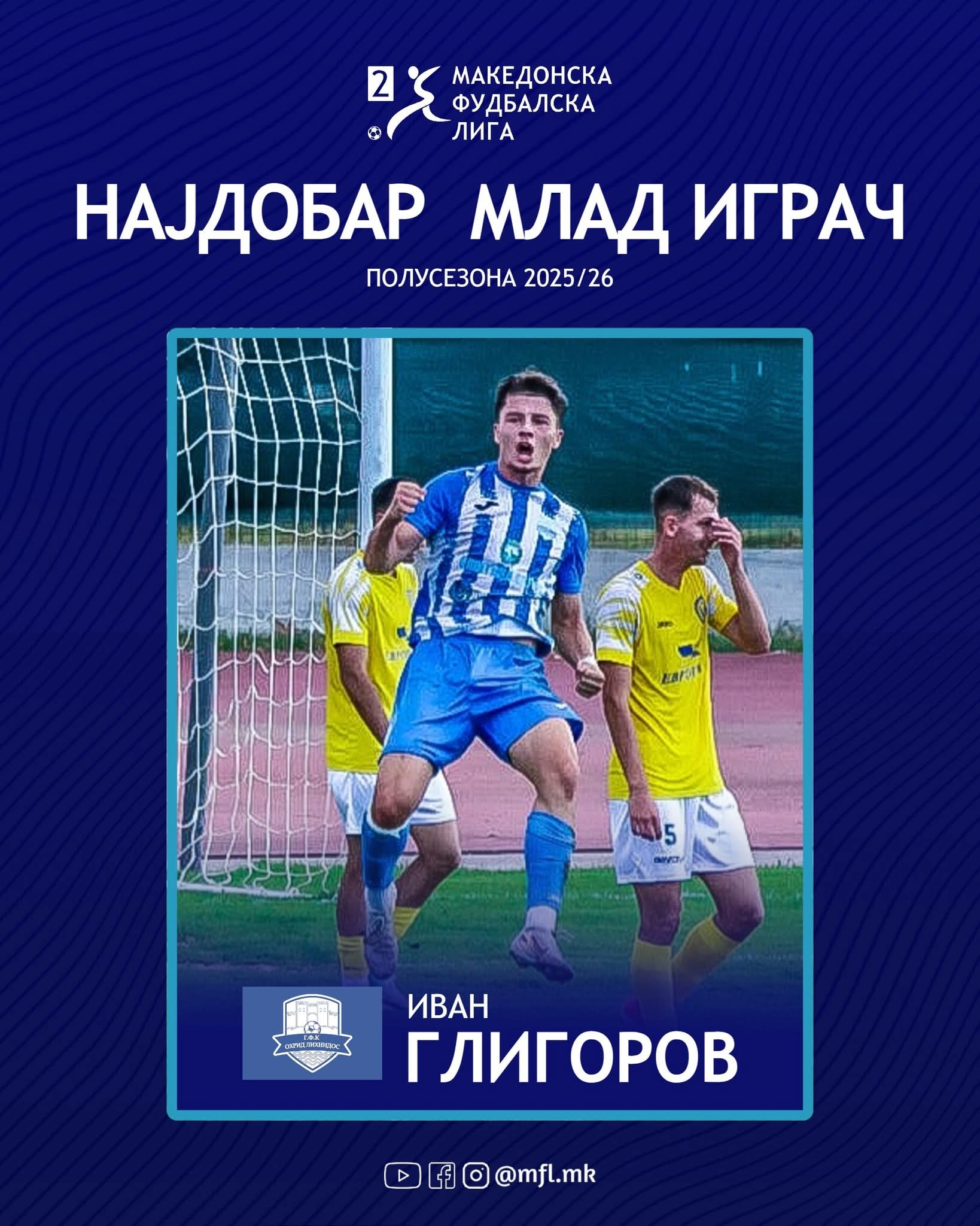 Иван Глигоров, пак, е прогласен за „Најдобар играч“ и „Најдобар млад играч“ на есенската полусезона во Втората лига.