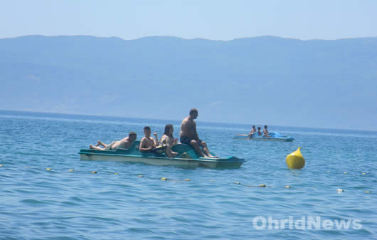 Жешкото сонце викендов ги наполни охридските плажи. Живата во термометрите деновиве се искачи над 30-от степен, а охриѓини и туристите уживаат разладувајќи се во езерските води.