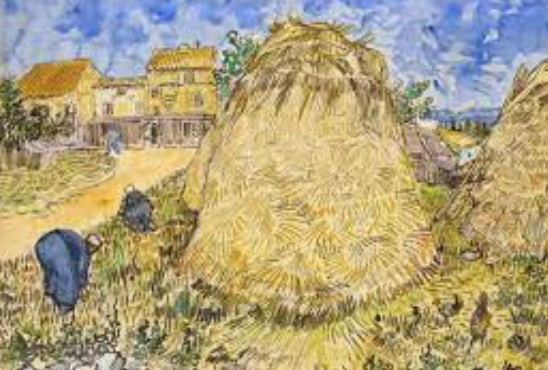.Акварелот со тема жетва, прикажува жени кои работат на нивите во Арл, Франција, пишува Си-Ен-Ен. Ван Гог сликал акварел во 1888 година, кога се повлекол во село во Франција поради лоша здравствена состојба.