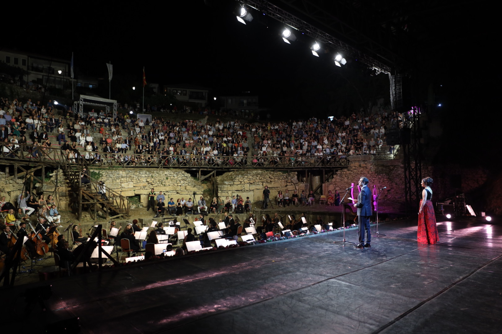 Пред исполнетиот аудиториум на Античкиот театар, Фестивалот за отворен го прогласи покровителот на манифестацијата, претседателот на државата Стево Пендаровски.