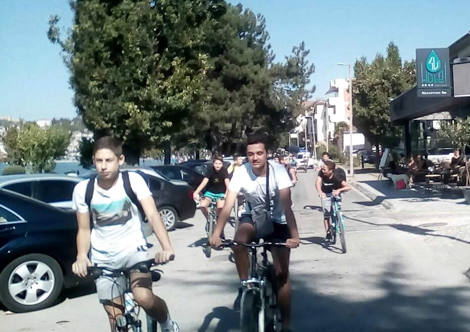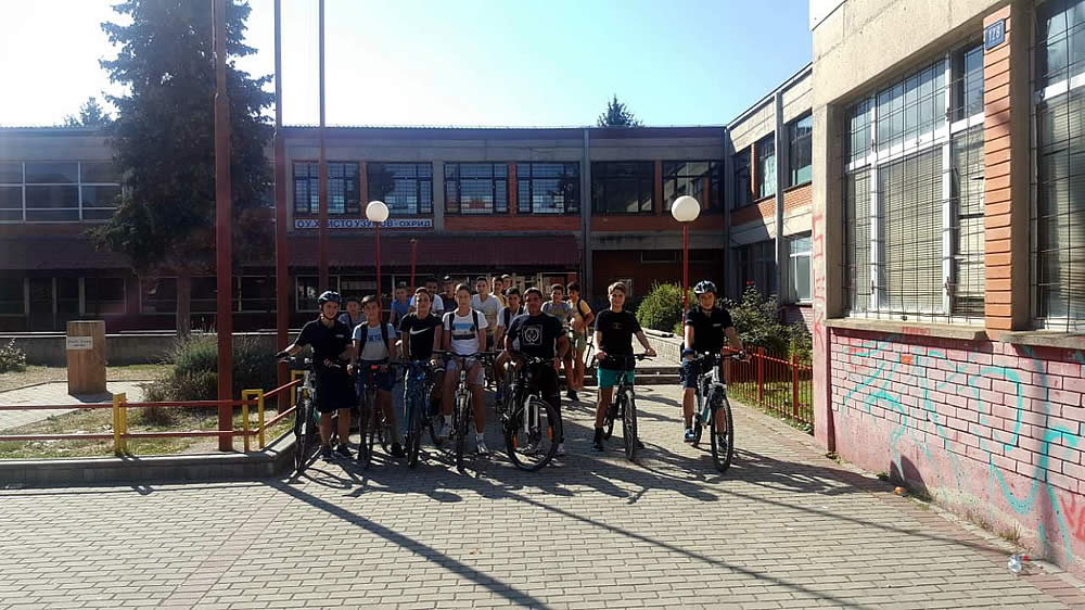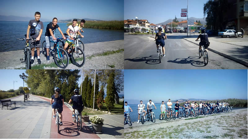 Придружувани од наставникот Тони Симоноски и велосипедската единица при СВР Охрид, учениците извозеа круг со велосипеди од ОУ „Христо Узунов“ до хотелот „Парк“ и назад.