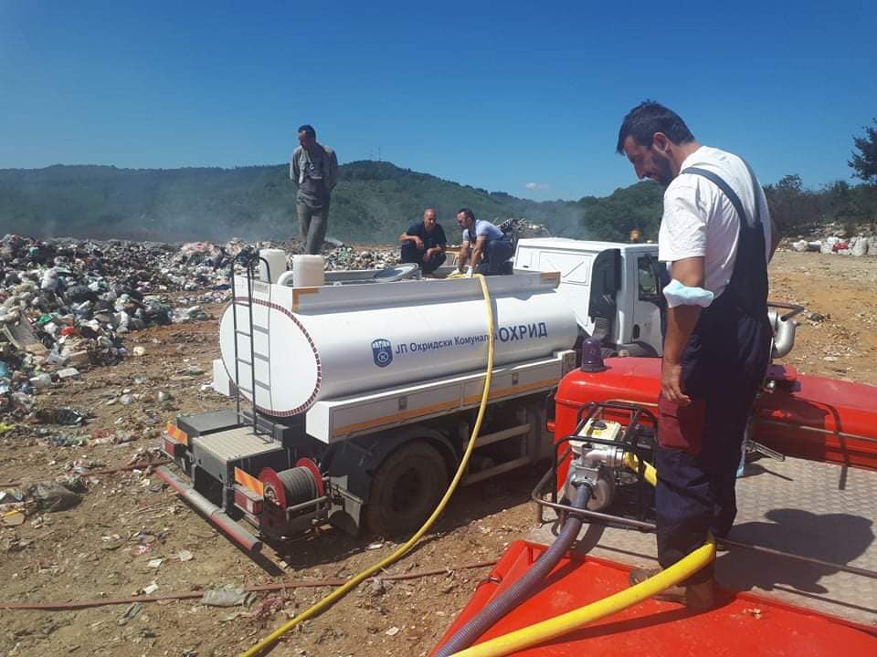 ЈП Охридски комуналец ги гаснеше опожарените делови од депонијата, и изврши покривање со земја/песок. Претходно беше спроведен третман со раствор кој содржи чиста алга, истакна директорот на ЈП „Охридски Комуналец“, Љупчо Грданоски.