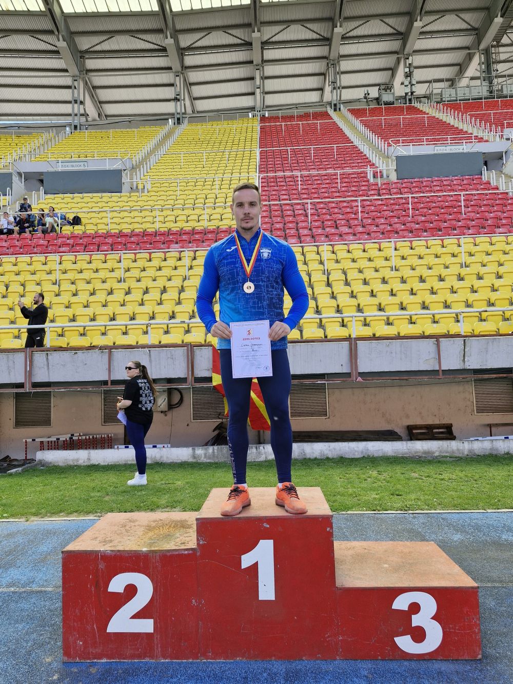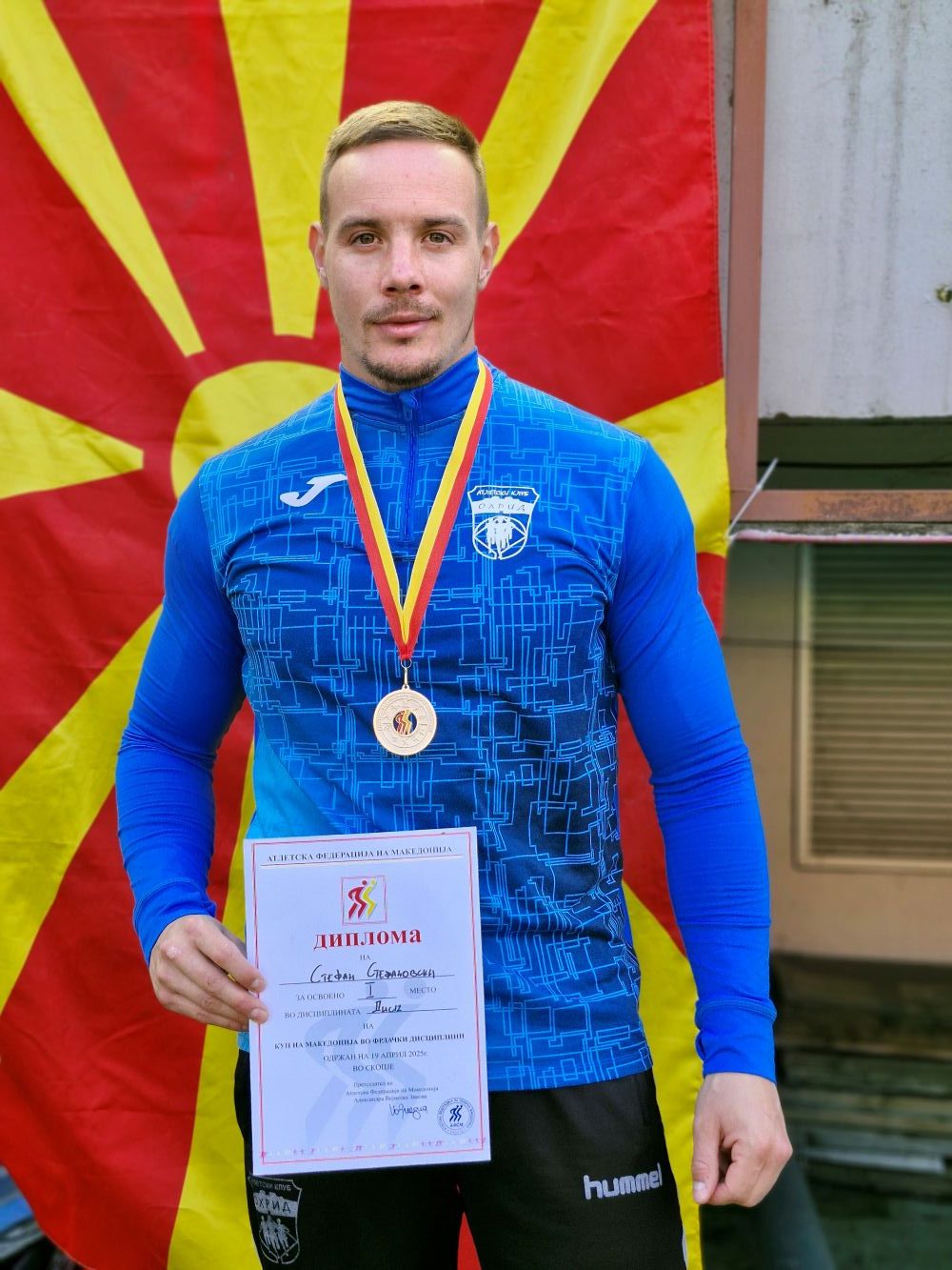 Стефаноски во неговата дисциплина го освои првото место со резултат 43.60м.