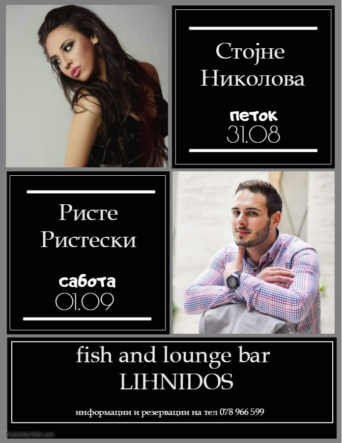 Во петок, 31.08.2018, во фиш и лаунџ бар Лихнидос настапува Стојне Николова.