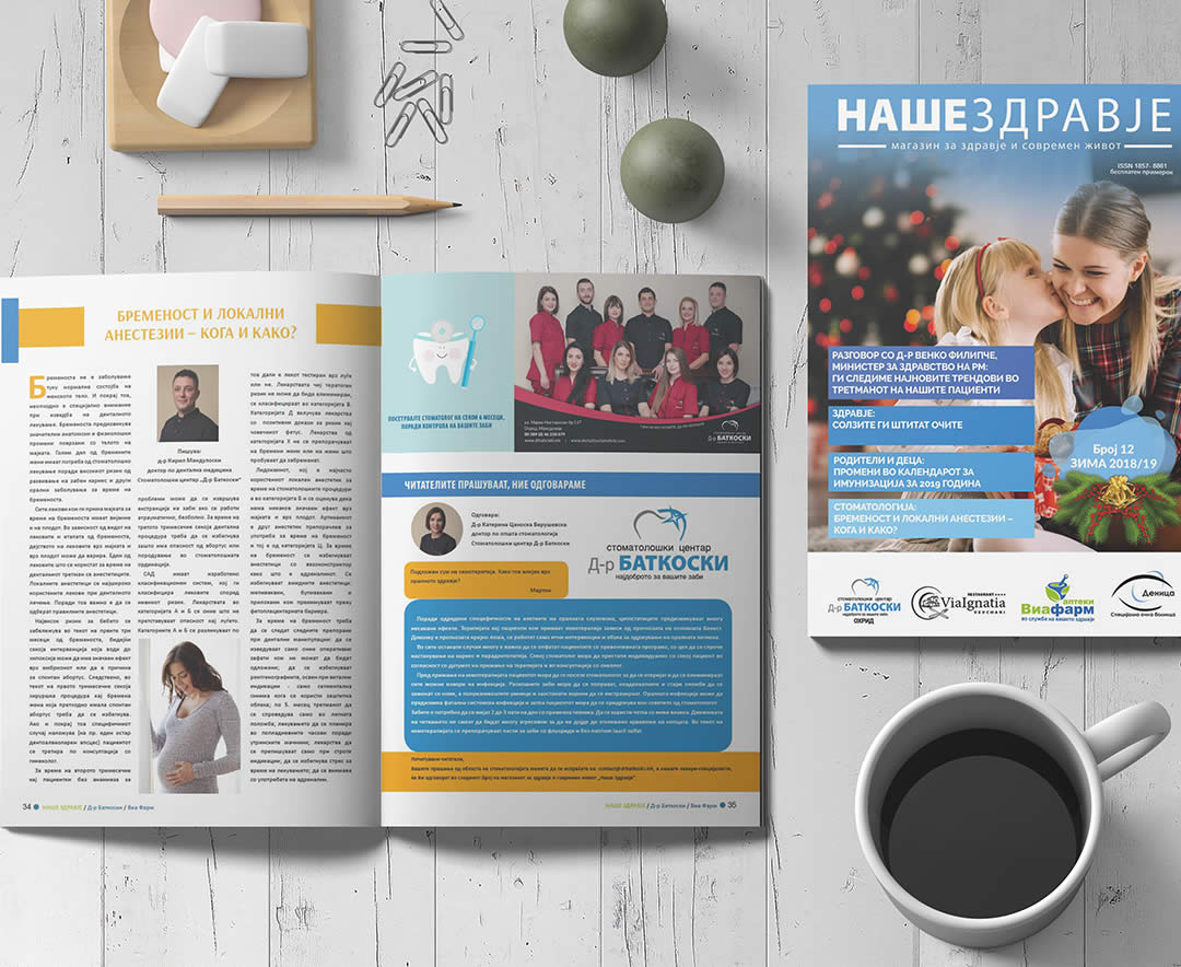 Аптеки „Виа Фарм“ ги следат современите текови. Од печат неодамна излезе 12 број на специјализираниот магазин за здравје и современ живот „Наше здравје“ во издание на аптеки „Виа Фарм“, во соработка со стоматолошкиот центар „Д-р Баткоски“, специјалната очна болница „Деница“ и ресторан „Виа Игнација“. Своите искуства и знаење тие несебично ги споделуваат заедно со еминентни имиња од областа на медицината, на четириесеттина страници исполнети со корисни совети и едукативни текстови.