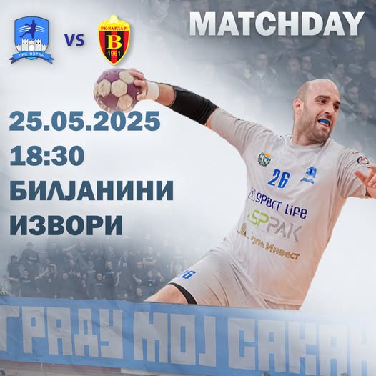 Дерби натпреварот од 8 коло од плеј-офот се игра вечерва во салата „Билјанини извори“ каде ГРК Охрид ќе го пречека Вардар. Натпреварот почнува во 18:30 часот.