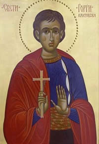 На иконите Свети Ѓорги Кратовски е претставен како голобрадо момче во кошула со крст во десната рака и маслинова гранка во левата. Над ореолот има натпис:„Свети Ѓорги кој настрада од Селим“.