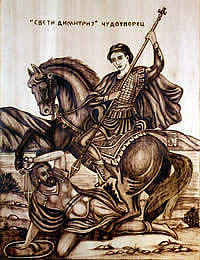 Светиот великомаченик Димитрија живеел во третиот век по Христа. Се родил во Солун и бил син на градоначалникот на овој град. Легендата вели дека солунскиот војвода долго време немал пород и по многуте молитви упатени кон Бога бил даруван со машко дете кое со големо внимание го образувал и воспитувал и го воведувал во христијанството. Во тоа време овие краишта биле во составот на Римската империја и со нив управувал царот Максимилијан кој бил паганин и жестоко ги прогонувал христијаните.