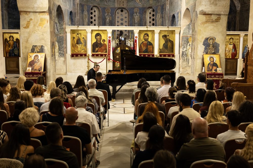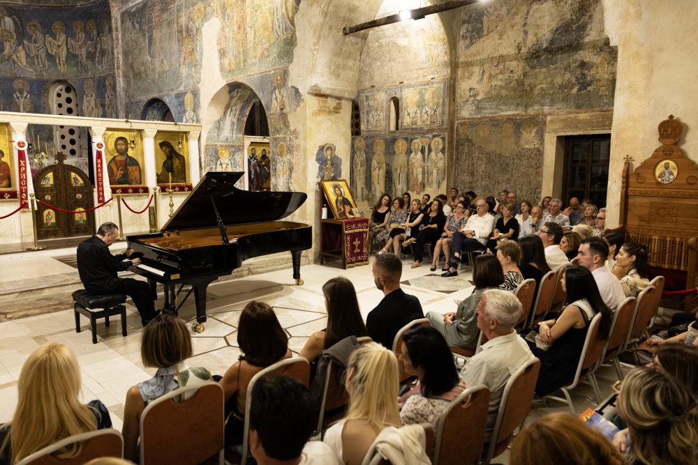 Музичката програма на „Охридско лето“ вчеравечер продолжи со солистички концерт на светски познатиот виртуоз на пијано, Михаил Плетњов. Во катедралната црква „Света Софија“ пред бројната публика Плетњов изведе избрани дела на Бах, Шуман и Григ. Неговото маестрално музицирање, брилјантната техника и нагласениот музички сенс беа наградени со долготраен аплауз и стоечки овации.