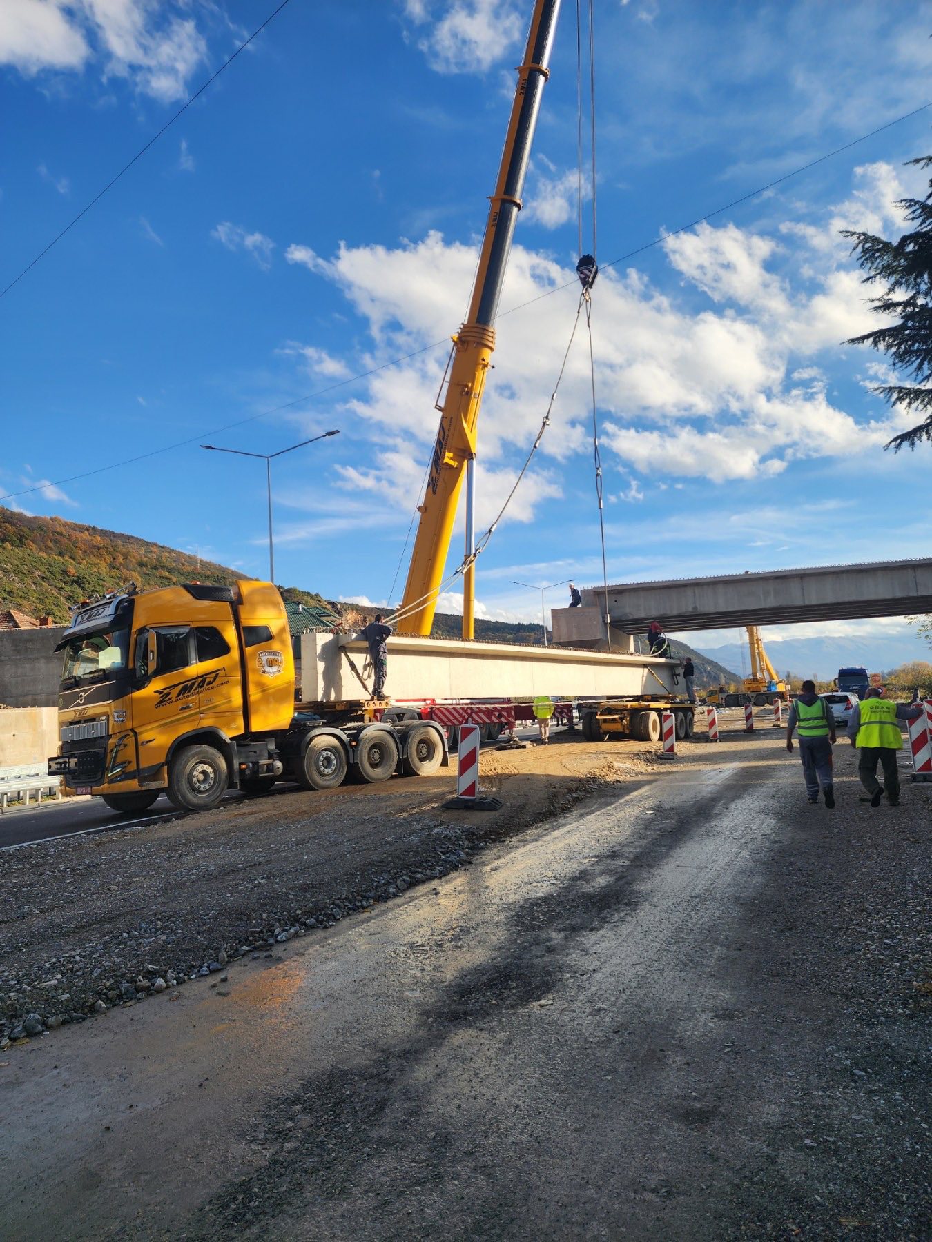 Вчера започна поставувањето на бетонските греди на натпатникот кај Подмоље. Планот e, како што информира директорот на Јавното претпријатие за државни патишта Коце Трајановски, до крајот на следниот месец комлетно натпатникот биде ставен во функција.