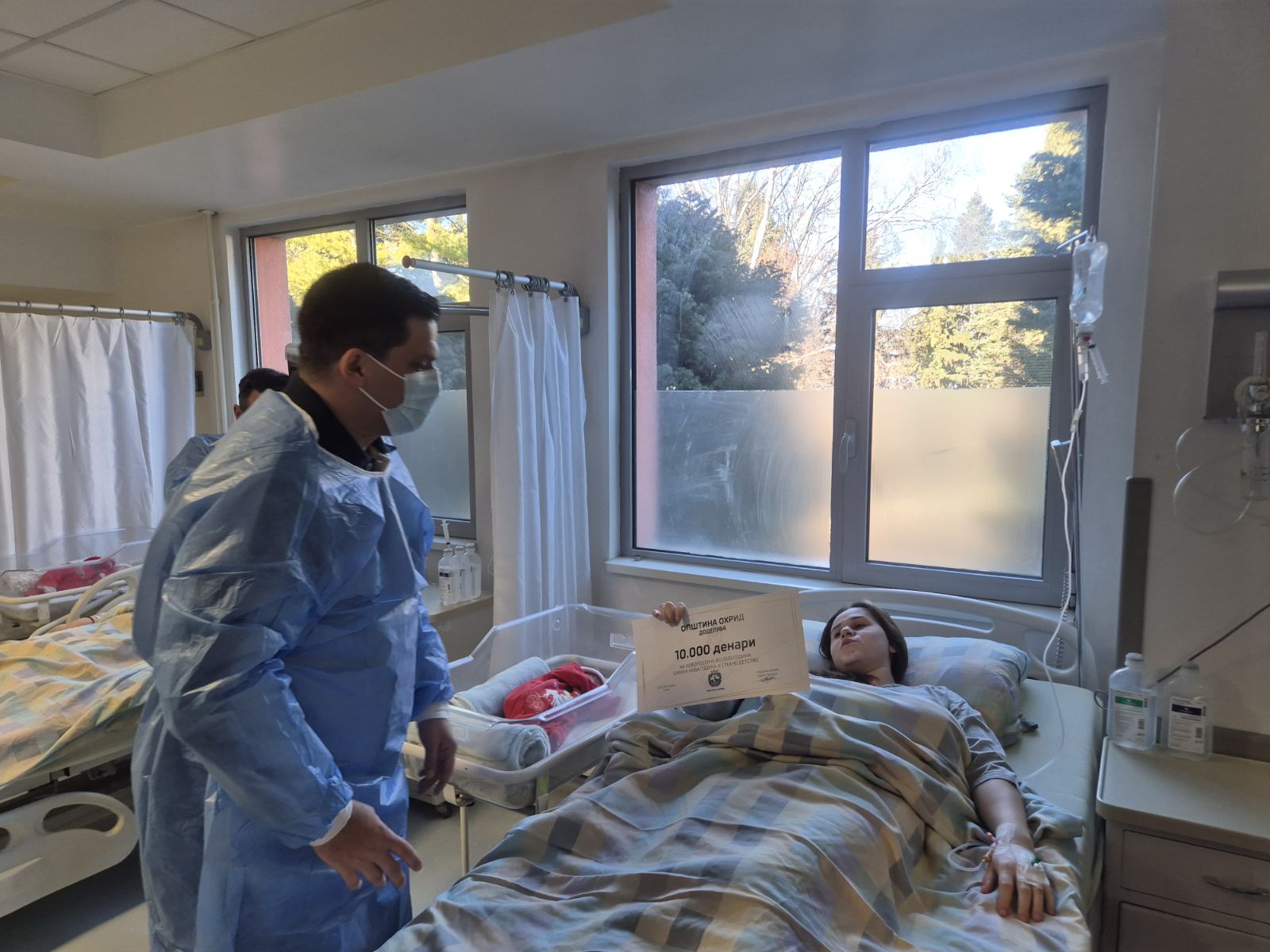 Новородените бебиња и нивните мајки попладнево ги посети градоначалникот на Охрид Кирил Пецаков. На првороденото од име на Општина Охрид тој му подари чек во вредност од 20000 денари, а на второ и третороденото бебе чек во вредност од 10000 денари.