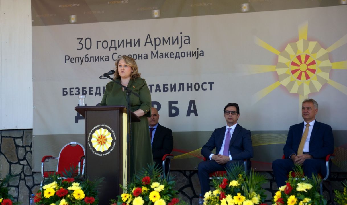Министерството за одбрана останува посветено во спроведувањето на сите мерки и активности кои се предвидени во Долгорочниот план за развој на одбранбените способности, но и Стратешкиот концепт на НАТО како и Концептот МКД Одбрана 2030. Наша обврска е да останеме постојан и кредибилен партнер на НАТО, но пред се и над се со целосна отеченост пред граѓаните со цел да ја оправдаме највисоката доверба која ја имаме од нив како Армија бидејќи во неа нема место за партизација и тесни интереси на поединци, групи и било која политичка партија, порача министерката за одбрана.