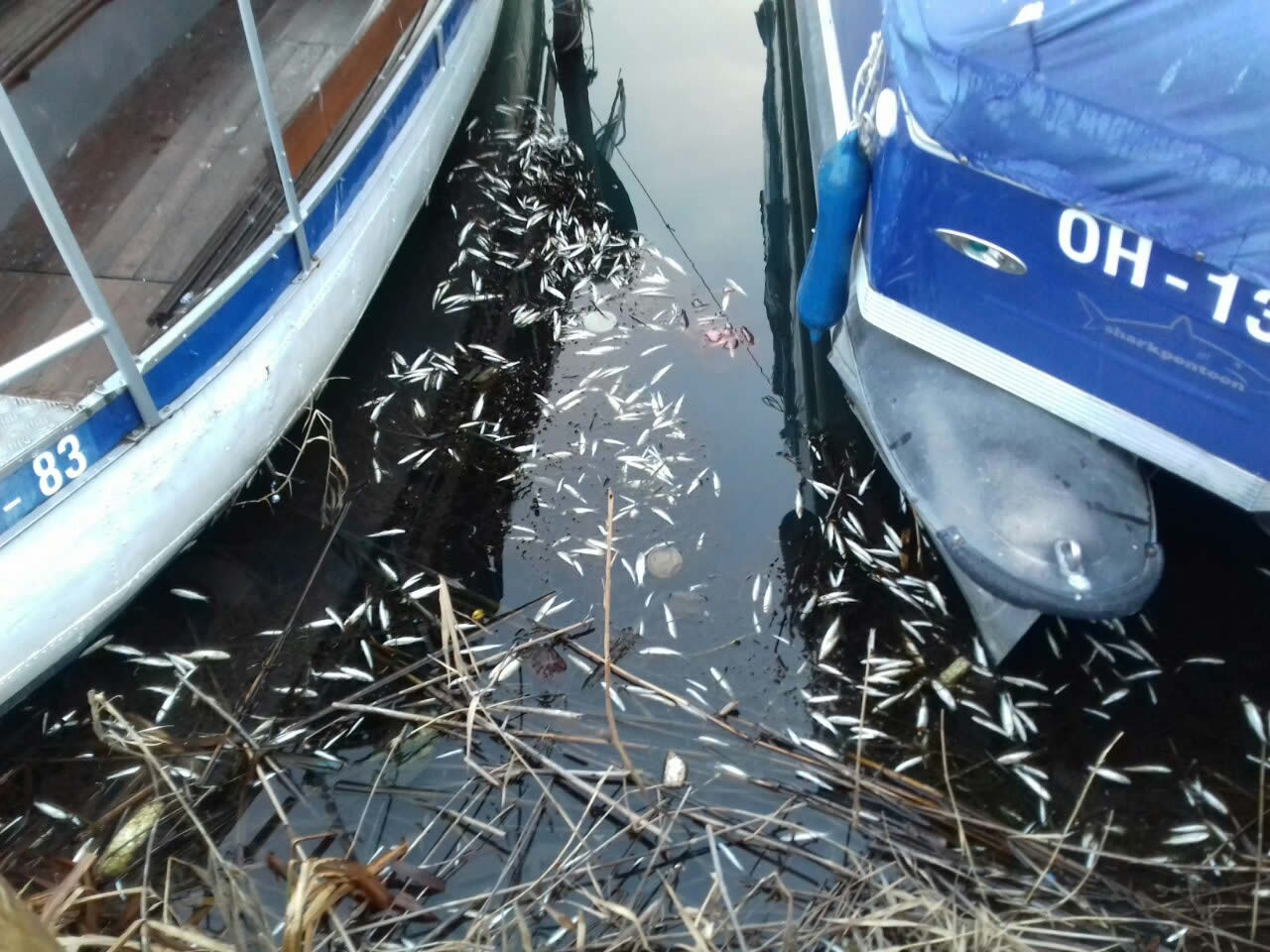 Во каналот Студенчишта повторно е забележано угинување на плашицата, која тука презимува. Помала количина мртва риба плута на површината од водата помеѓу пловните објекти кои се закотвени за брегот.