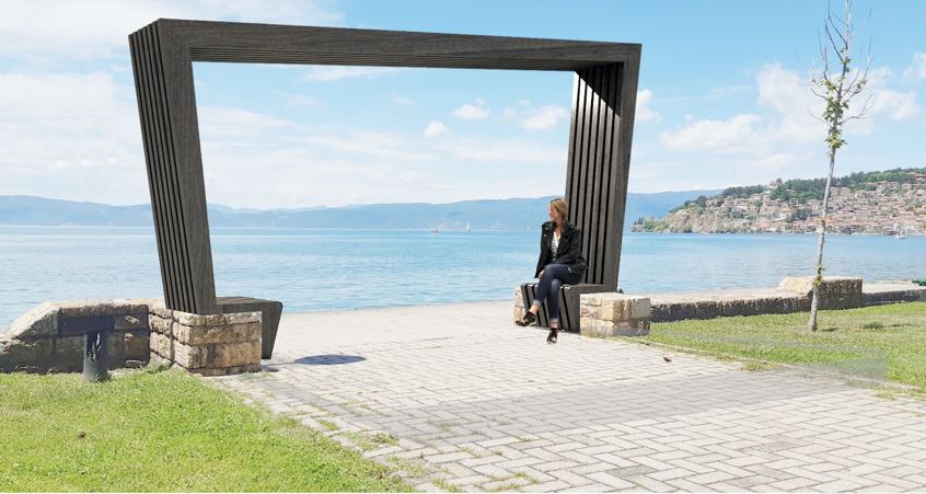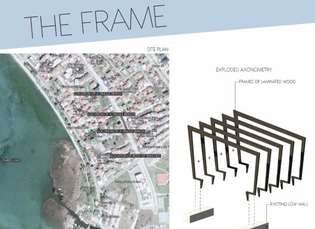 Добитничкиот проект е лоциран во Охрид и е насловен како „The Frame Bench„ или „Клупа Рамка“.