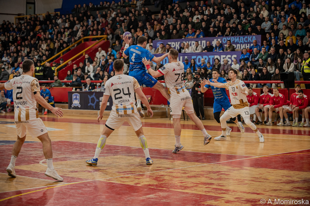ГРК Охрид загуби од Вардар 26:28, во дерби натпреварот од 14 коло во Супер лигата, што се одигра вечерва во салата „Билјани извори“ која беше исполнета до последно место.