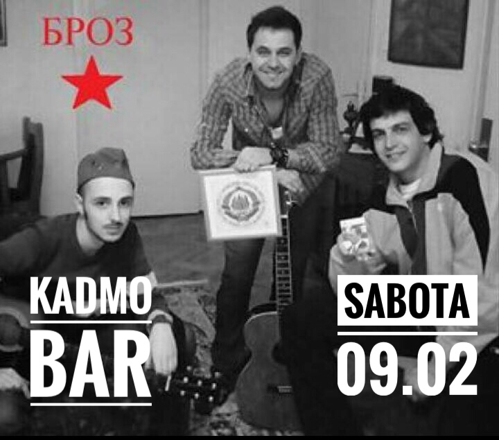 Во сабота 9 февруари во Кадмо бар настапува популарниот бенд Броз, чии забави се прераскажуваат.