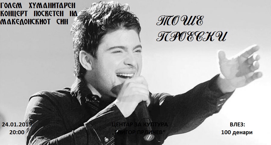 Во чест на 34-тиот роденден на најголемата македонска музичка ѕвезда, Тоше Проески, вечерва во Центарот за култура „Григор Прличев“ во Охрид ќе се одржи голем хуманитарен концерт.