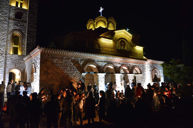Илјадници верници ги исполнија храмовите на Македонската православна црква во Охрид на големиот христијански празник Воскресение Христово – Велигден.