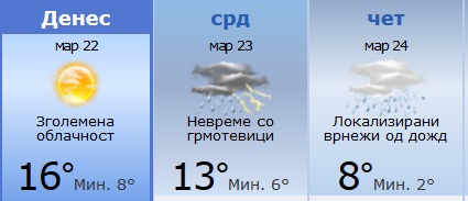 Времето во Македонија денеска ќе биде сончево со мала до умерена ло...