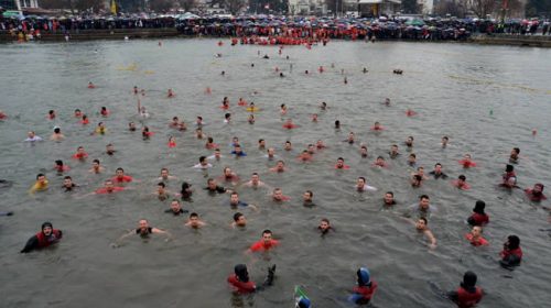 Меѓу илјадата верници кои утрово се фрлаа по крстот во осветените в...
