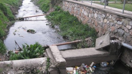 Пластични шишиња, различни отпадоци и смет може да се видат во кори...