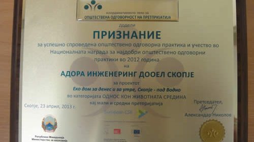 Уште едно високо национално признание за „Адора Инженеринг“„Адора Инженеринг“ го доби 8-то високо национално признание за најд...