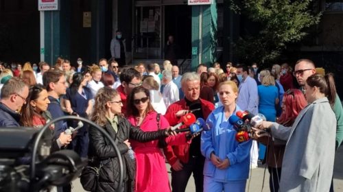 Протест на здравствени работници од ГОБ „8 Септември“Здравствени работници од ГОБ „8 Септември“ денеска излегоа на проте...