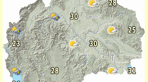 Метеоролозите најавуваат можна појава на невремеВремето денеска ќе биде сончево со умерена облачност и со слаб вете...
