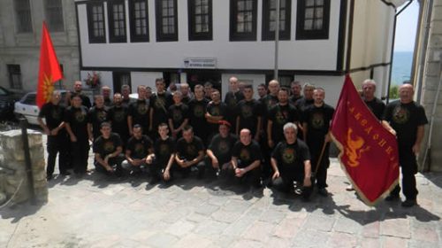Пред пат за Крушево, охридските комити на поклонение пред споменикот…Шеесетината почитувачи на традицијата од Охрид, на кои им се придру...
