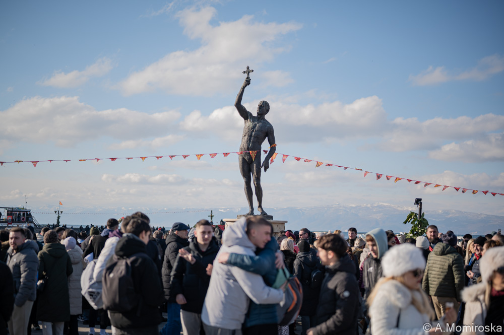 Водени од силната вера во благодатта на осветената вода и од вековниот обичај што го симболизира крштевањето на Исус Христос, голем број верници учествуваа во овој свет чин, со молитва и надеж за духовно прочистување. Честитки до Мартин Гоџо, кој и годинава успеа да го извади светиот крст од Охридските езерски води! Му подарив Пафта, Невестински колан, од Галичник од 19 век., упатувајќи му искрени желби за добро здравје и лична среќа, вели претседателката Сиљановска – Давкова.
