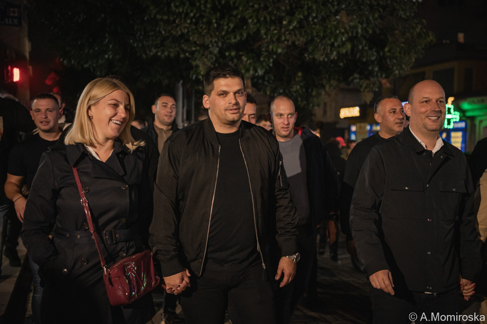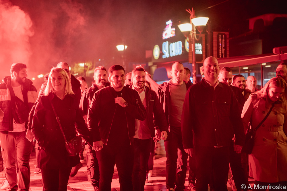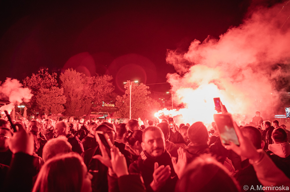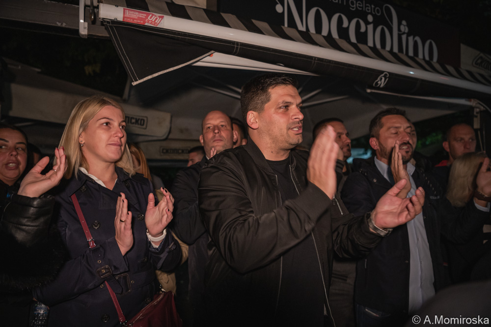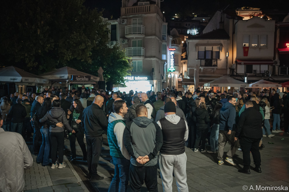 Голем број партиски членови, симпатизери и поддржувачи, се собраа вечерва на градскиот плоштад во Охрид да ја прослават победата на кандидатот на ВМРО ДПМНЕ Кирил Пецаков на локалните избори 2025.