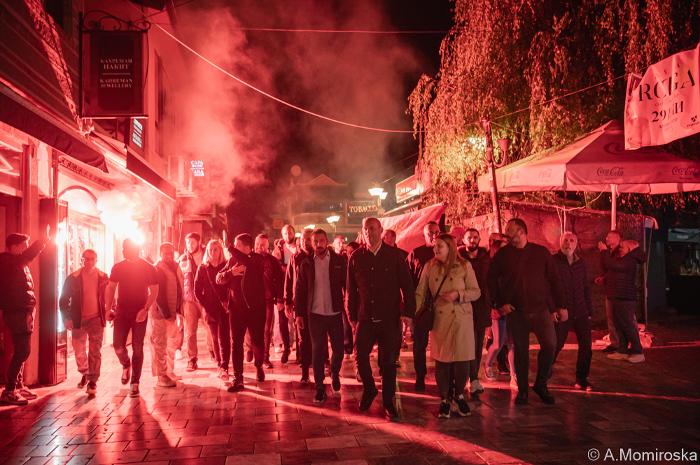 Победата се славеше со музика, „бакљи“ и огномет кој го осветли небото над Охрид.