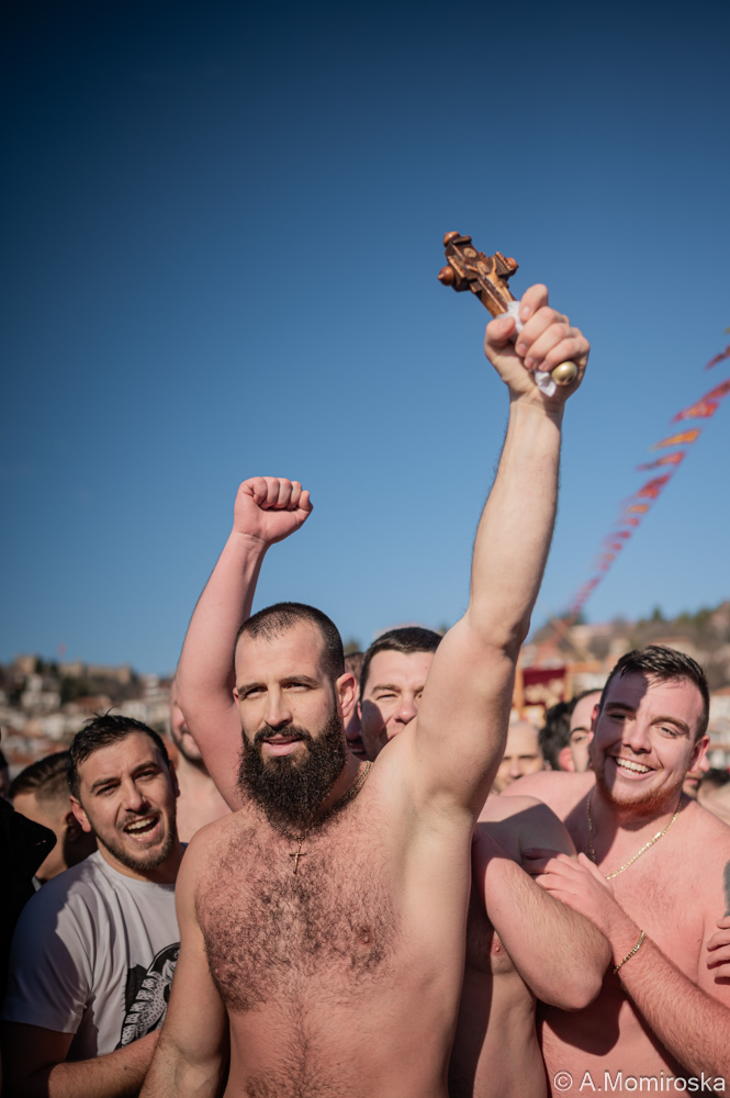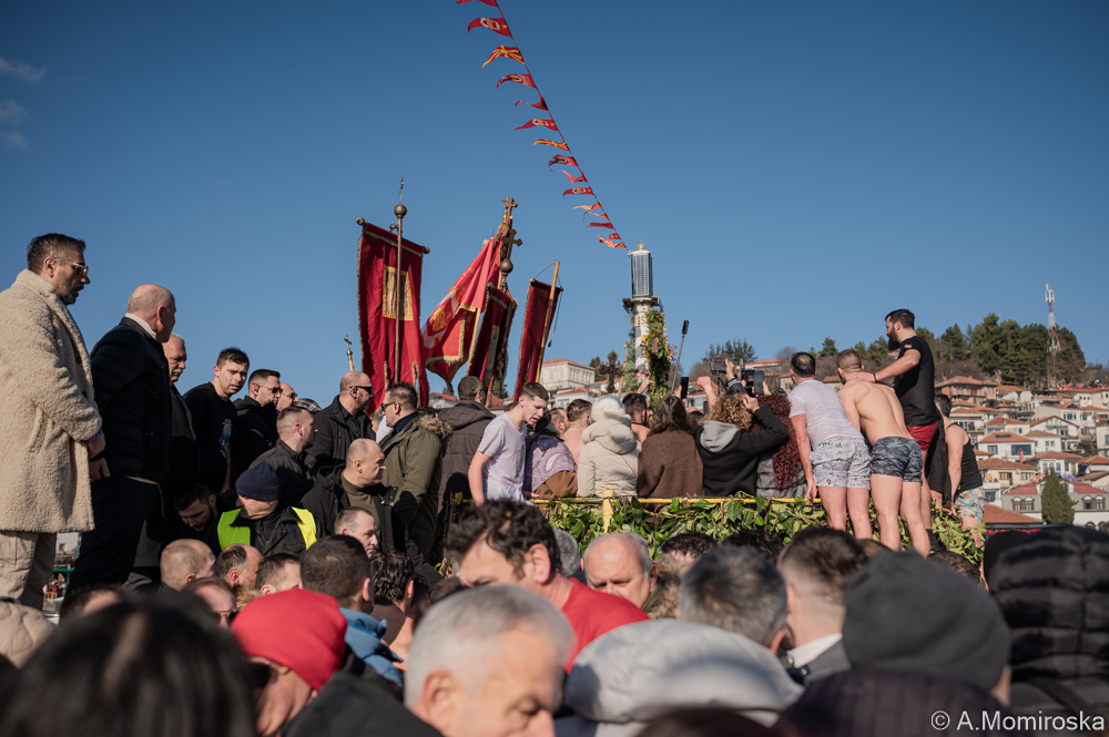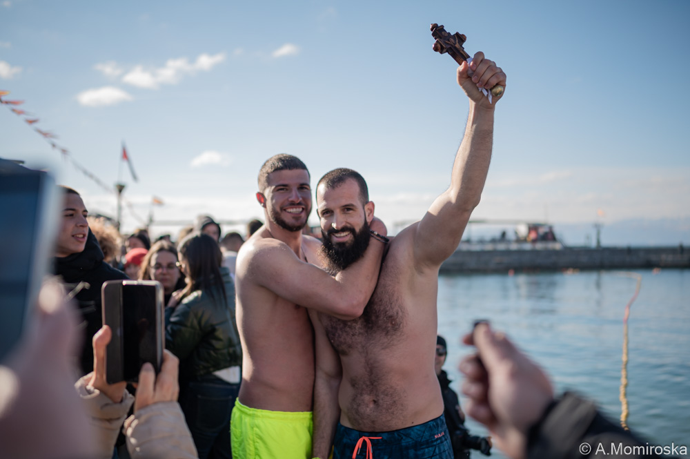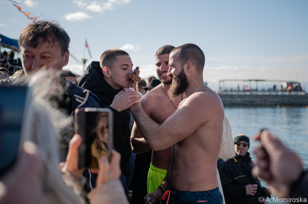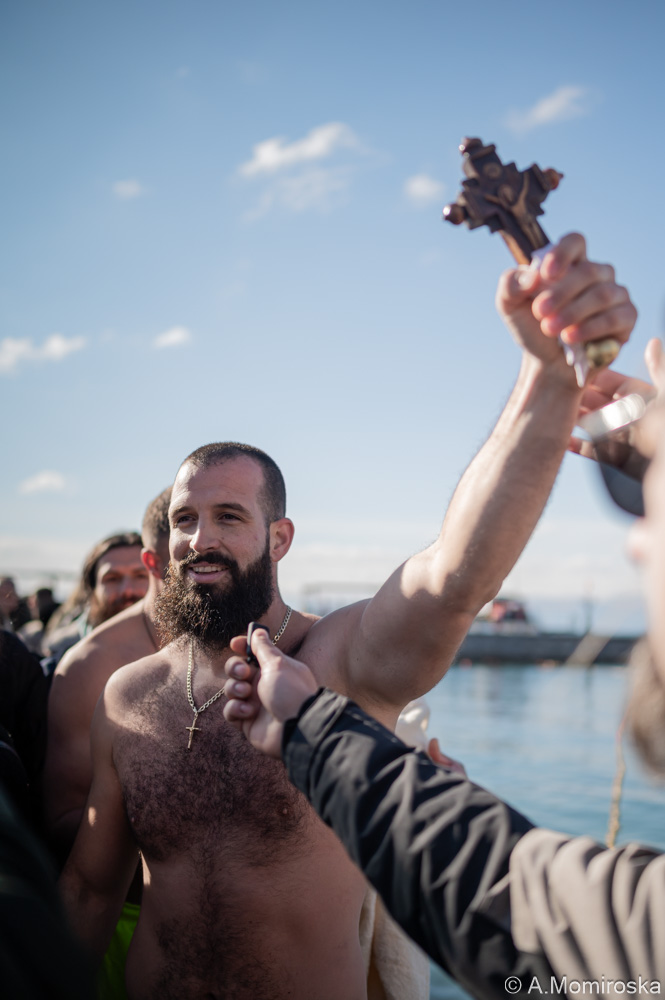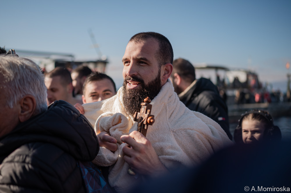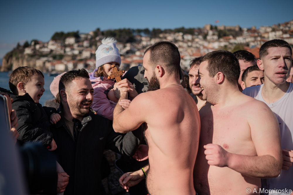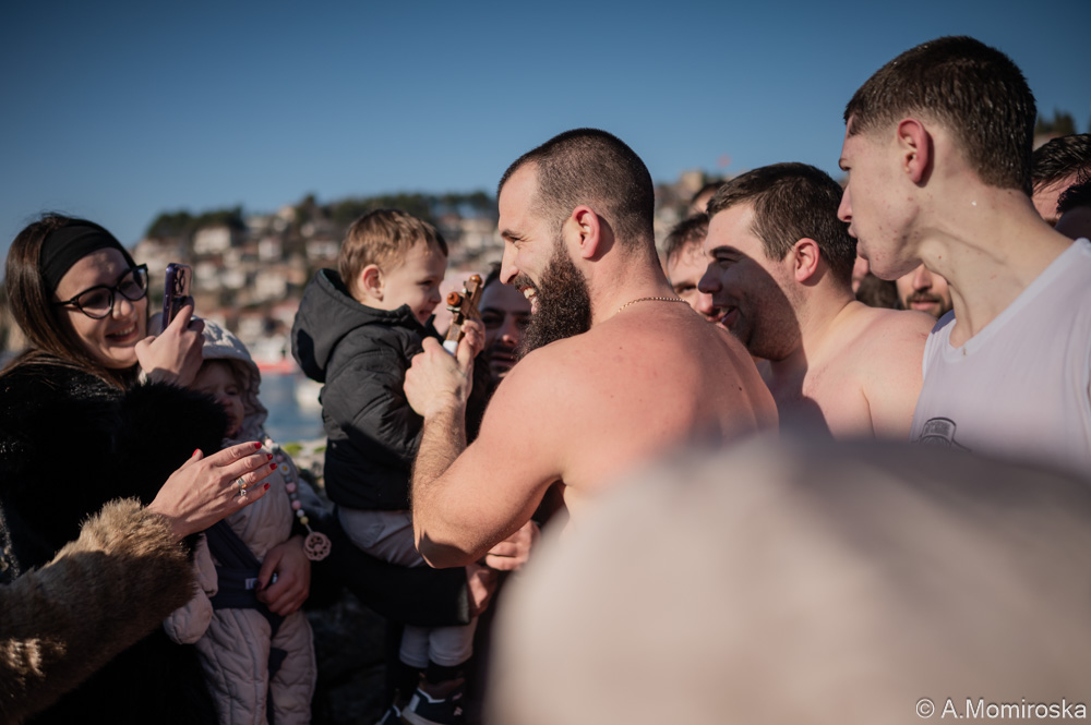 Мартин Гоџо од Варош го фати светиот крстот што на празникот Богојавление Водици, денеска, беше положен во осветените води на Охридското Езеро. Тој беше најсреќен помеѓу неколкуте стотини капачи. Мартин светиот крст го фати и минатата 2025 година и во 2022 година.