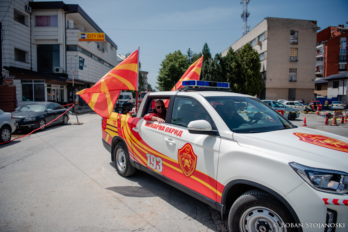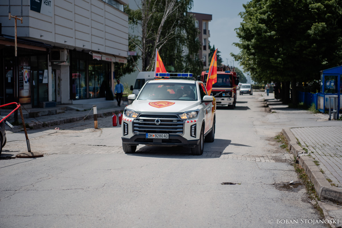 Денешниот настан за одбележување на Денот на пожарникарите започна со дефиле низ охридските улици на три возила со пожарникари, со звучна и светлосна сигнализација. Возилата се движеа од противпожарниот дом, бул. „Македонски Просветители“, бул. „Туристичка“, „АСНОМ“, ул. „Карпош Војвода“, ул. „Сирма Војвода“, ул. „Марко Цепенков“, ул. „Ристо Чадо“, „Железничка“, ул. „Егејска“, ул. „7-ми Ноември“, бул. „Македонски Просветители“.