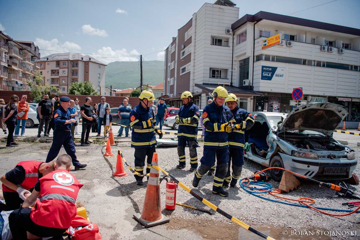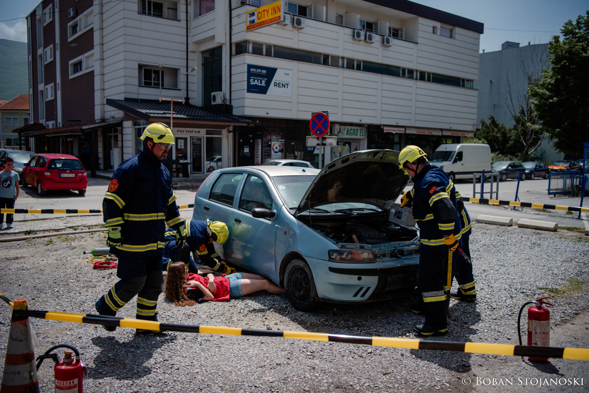 Присутните имаа можност во заедничката соработка на ТППЕ Охрид и екипи на ОО Црвен крст Охрид да проследат вежба – симулација на извлекување повредени лица од сообраќајна незгода.