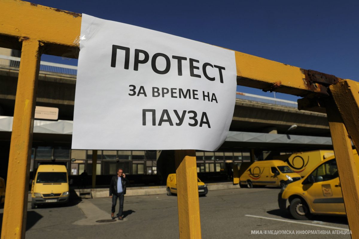 Вработените во националната Пошта пред една недела почнаа со секојдневни предупредувачки протести барајќи првенствено исплата на платата за септември. Протестите се одржаа во тек на паузите во подружниците на поштенското претпријатие во подружниците во Скопје и низ државата.