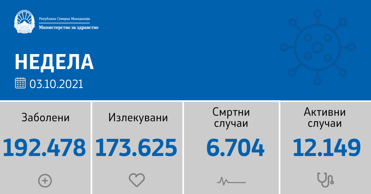 Оздравеле во Скопје – 138 пациенти, Куманово – 23, Штип – 19, Битола – 15, Кавадарци – 14, Крива Паланка – 12, Свети Николе – 11, Кочани – 9, Прилеп – 8, Велес и Кичево – по 7, Ресен – 6, Гевгелија и Берово – по 4, Радовиш и Гостивар – по 3, Кратово, Неготино и Пробиштип – по 2, Демир Хисар, Струмица, Валандово и Демир Капија – по 1.