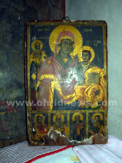 На едната икона со димензии 48х30х3 сантиметри која потекнува од 19 век во централниот дел е насликана Св. Богородица со малиот Христос. Во нивна позадина е претставен чудотворецот и заштитник на водите Св. Никола.