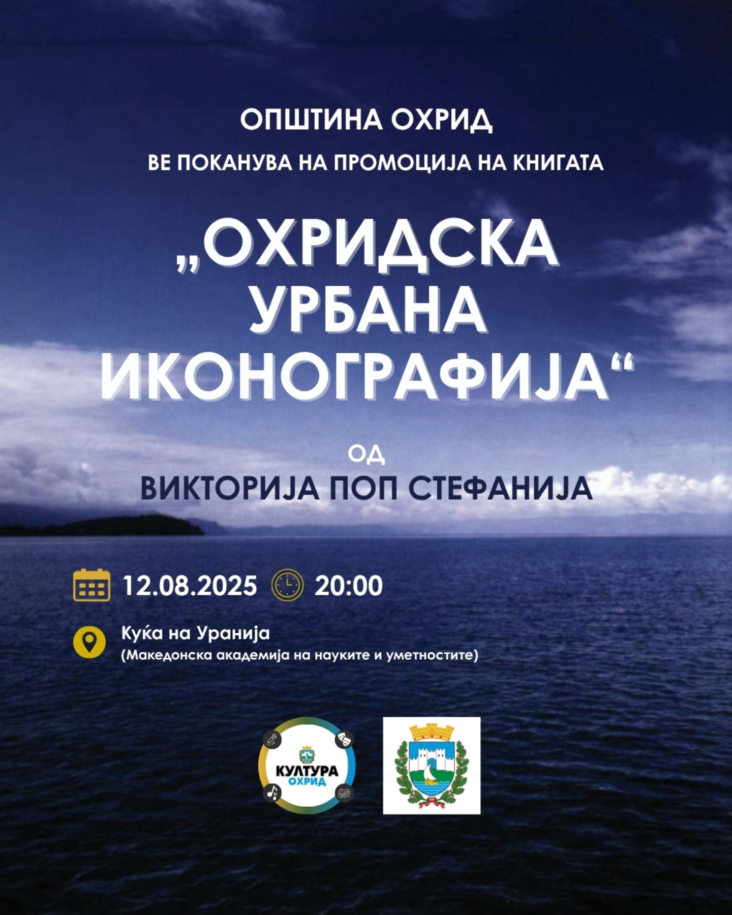 Во куќата на Уранија на Македонската академија на науките и уметностите (МАНУ), утре вечер во 20 часот, ќе биде промовирана книгата „Охридска урбана иконографија“ од Викторија Поп Стефанија.