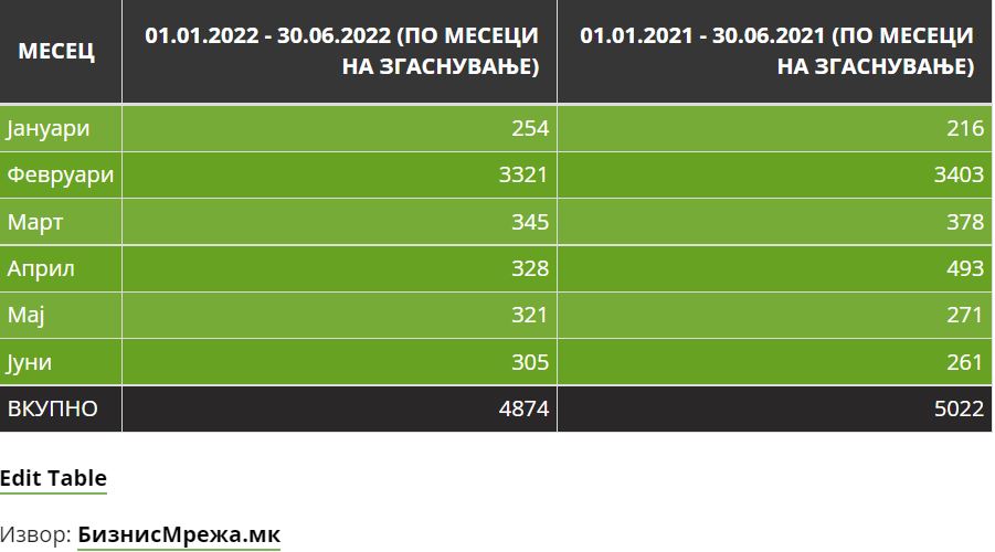 Оваа година има пополовен економски амбиент во однос на минатата година, па и податоците за згаснатите фирми се подобри, како што можеше и да се очекува. Засега, Државниот завод за статистика ги има објавено само податоците за првиот квартал од оваа година за растот на бруто домашниот производ, а тој покажува економски раст од 2,4 проценти во однос на првиот квартал од 2021 година. Последниот податок за индустриското производство, а кој се однесува на мај, покажува дека во тој месец годинава, индустриското производство е зголемно за 8,5 проценти во однос на ланскиот мај, додека во периодот јануари-мај 2022 година во однос јануари-мај 2021 година, растот на индустриското производство е 2,9 проценти. – се наведува во анализата