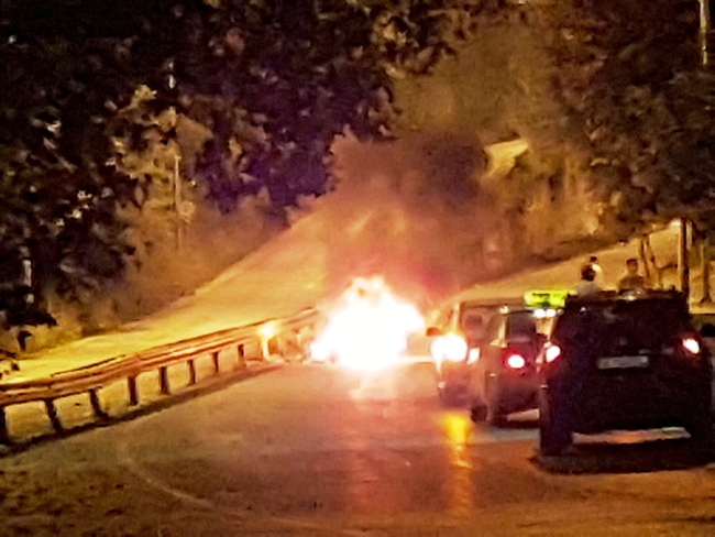 На местото на сообраќајната незгода пристигнала екипа од охридската Противпожарна единица која го изгаснала пожарот.