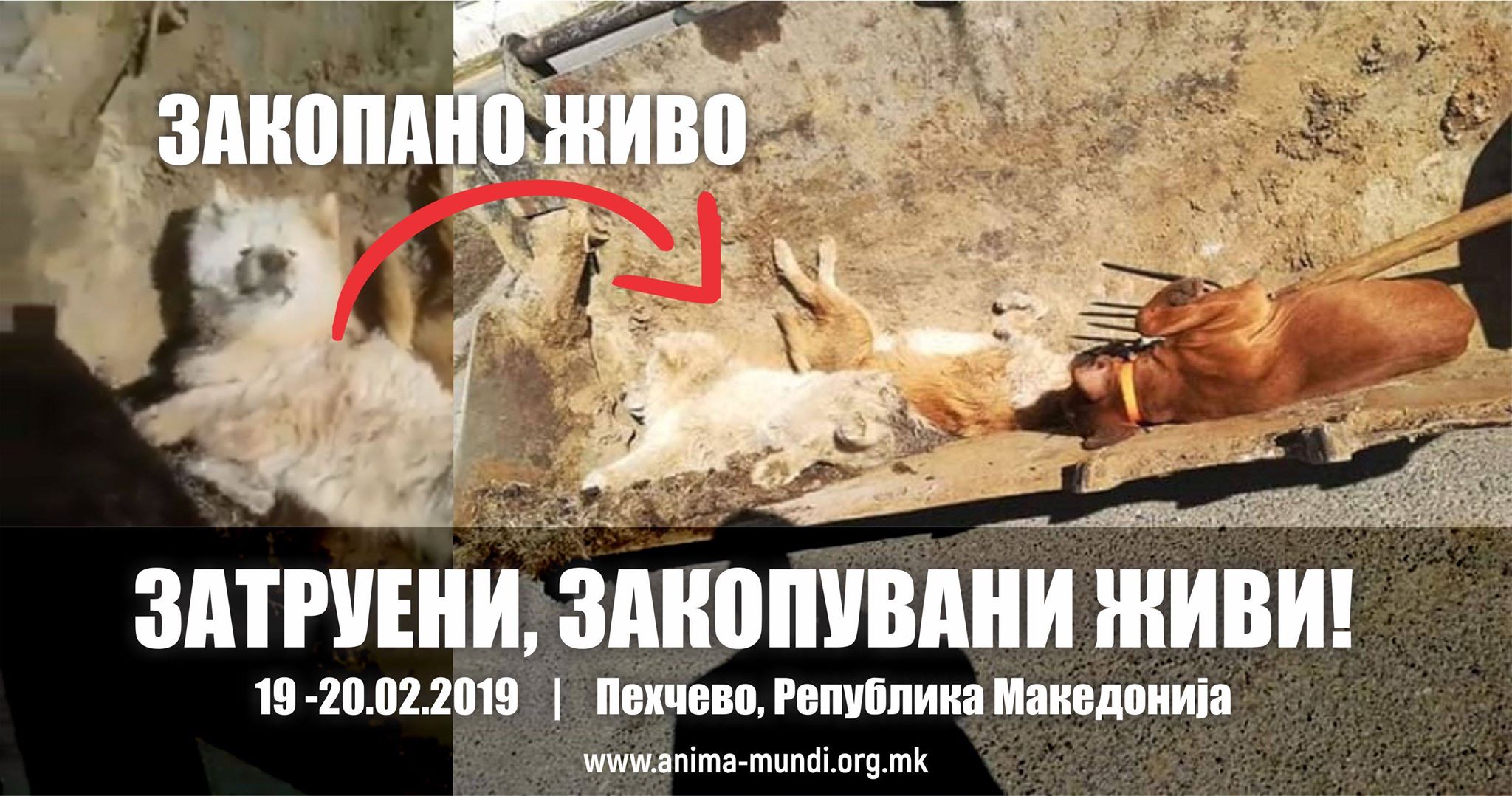 Постои основано сомнение дека на ден 19.02 и 20.02.2019 година околу пладне во Пехчево, НН лица вработени во ЈКП Комуналец ПО Пехчево со помош на вили и градежна механизација подигнувале од улица, а потоа и затрупувале со земја, живи бездомни и домашни кучиња, кои претходно биле затруени. Од видеоматеријалот јасно се гледа дека неколку кучиња – домашни миленици и бездомни, собирани со вили, а со помош на градежна механизација се фрлени во дупка и видно грчејќи се во агонија предизвикана од отровот, немаат можност да избегаат, со што се осудени на сурова и мачна смрт. – стои во кривичната пријава.